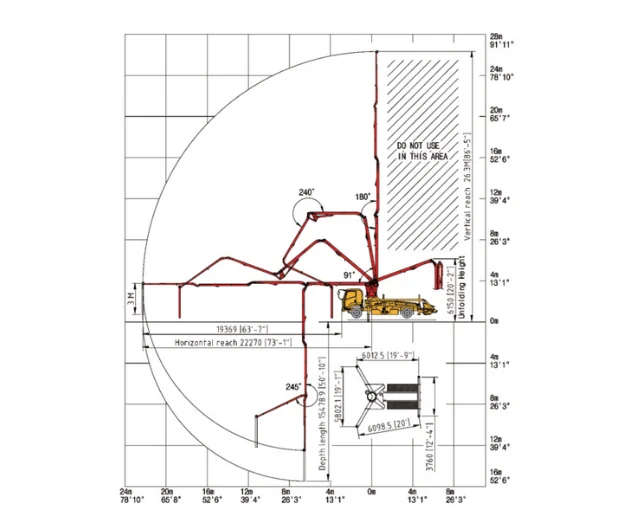 Ця модель є вершиною інженерної думки, що поєднує в собі потужність, надійність та інноваційні технології. Здатність подавати бетон зі швидкістю до 120 м³/год дозволяє забезпечити безперервний робочий цикл, що є критично важливим для великих об’єктів. При цьому стріла з Z-подібним складанням забезпечує високу гнучкість, дозволяючи обходити перешкоди і подавати бетон навіть у важкодоступні місця.