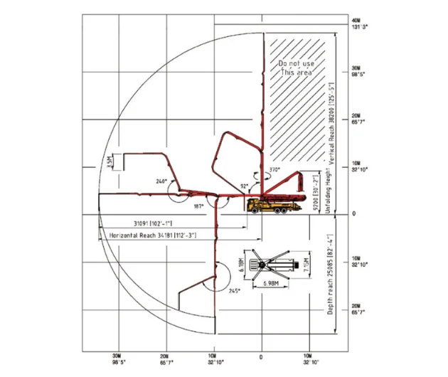 Ця модель є флагманом у своєму класі, завдяки унікальним технічним характеристикам, які дозволяють виконувати роботу з неймовірною ефективністю. Висота подачі 38 метрів відкриває нові можливості для зведення багатоповерхових будівель, а продуктивність до 170 м³/год забезпечує безперервність процесу. Система стріли з RZ-подібним складанням дозволяє досягати важкодоступних місць, що робить цей автобетононасос універсальним інструментом для будь-якого будівельного майданчика.