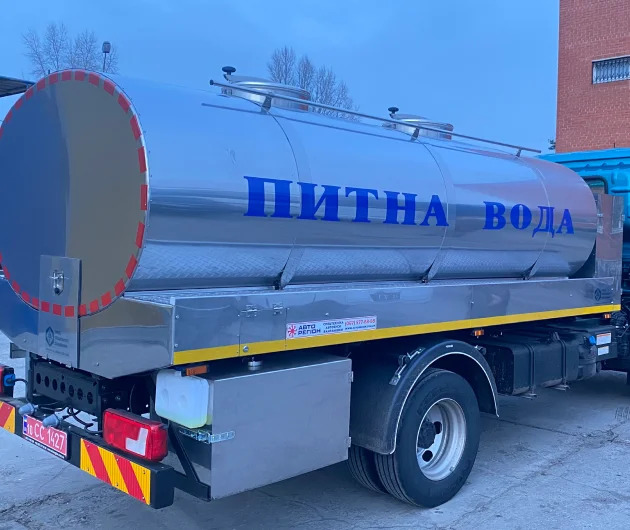 - Харчова нержавіюча сталь: Внутрішня частина цистерни виготовлена з високоякісної харчової нержавіючої сталі AISI 304, що відповідає найвищим стандартам безпеки для транспортування питної води.