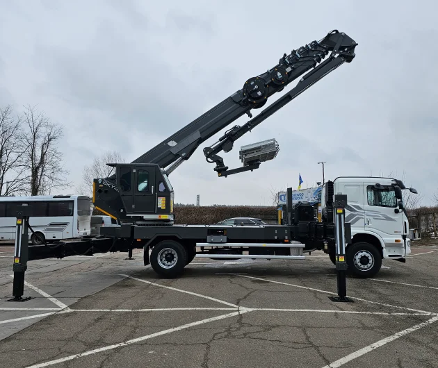 – Стріла має 5 секцій (основна) та 2 допоміжні. Максимальна висота опускання допоміжної стріли – 9 м.