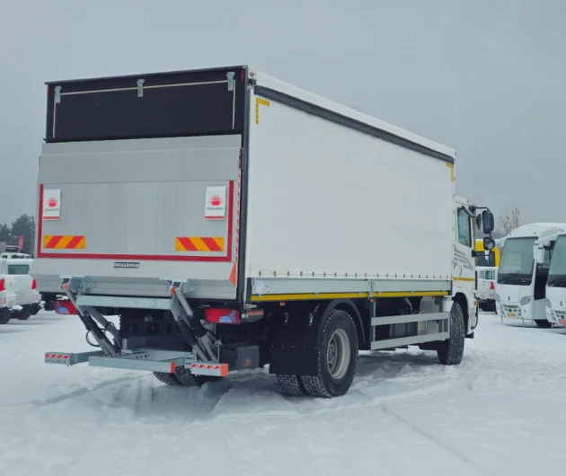 Ключова перевага цієї моделі — повна незалежність від складської інфраструктури. Встановлений гідроборт преміального бренду Dhollandia перетворює процес вивантаження на швидку та безпечну операцію.