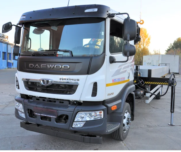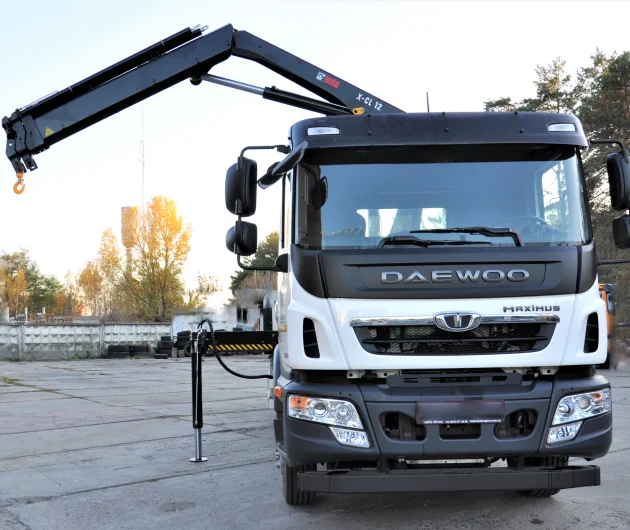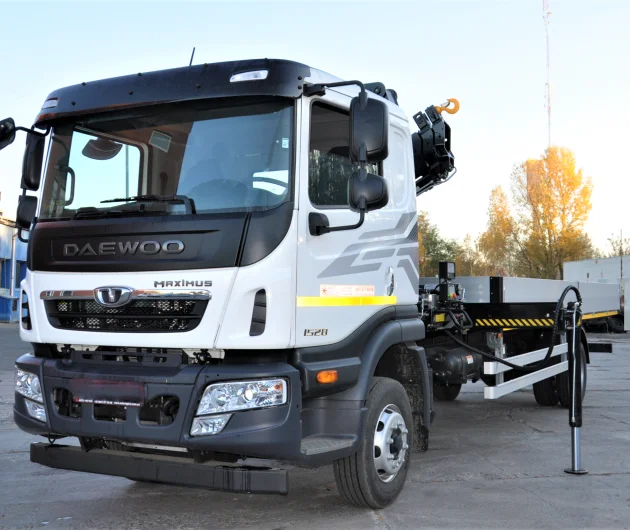 Daewoo Maximus обладнаний зручним бортом з відкидними секціями, стабільними опорами, сучасною гідравлічною системою і надійним дизельним двигуном. КМУ HIAB встановлюється за кабіною, що забезпечує оптимальний розподіл ваги та зручність роботи.