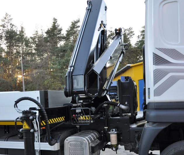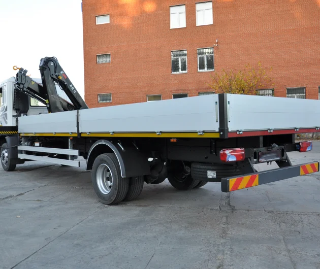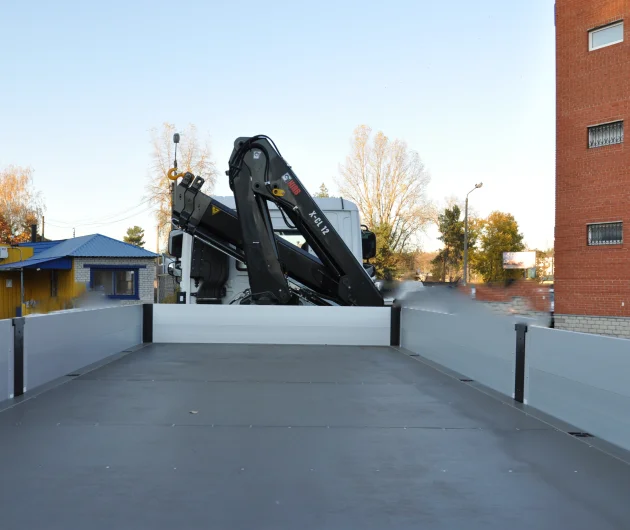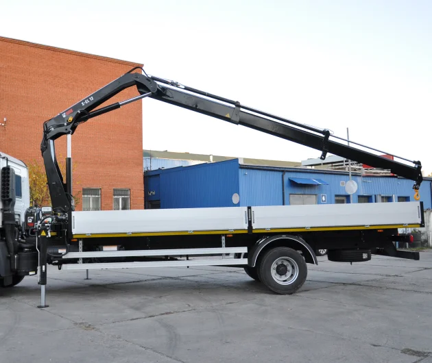 Ця вантажівка забезпечує ефективну роботу на різних етапах перевезень та монтажу. Одне авто виконує функції одразу двох одиниць техніки — бортового авто і крану.