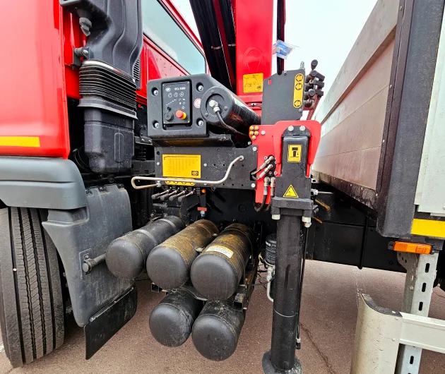 - Гідравлічна система стабілізації крана з висувними опорами та фіксаторами.