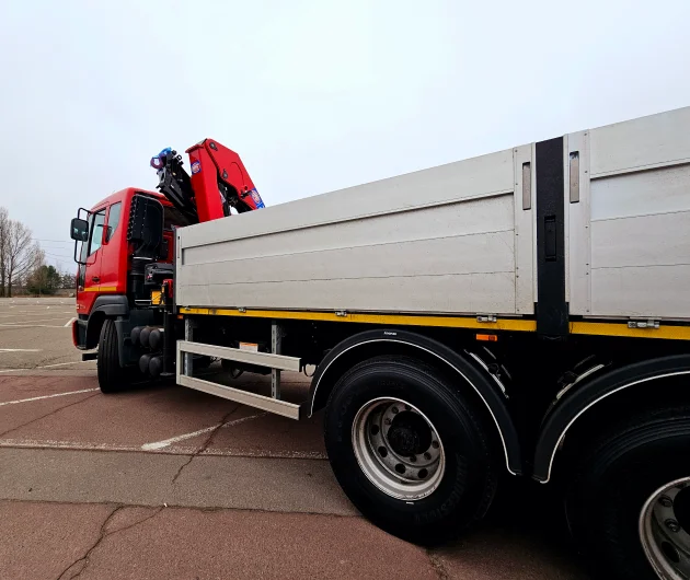 Бортовий автомобіль з крано-маніпуляторною установкою (КМУ) на базі Daewoo Novus 6х4 CL6CF – це універсальний комерційний транспорт, призначений для переміщення та перевезення вантажів. Машина відрізняється високою потужністю, надійністю та функціональністю, що робить її незамінною для будівельних, транспортних і логістичних завдань.