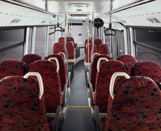 - Просторий інтер’єр: Салон автобуса оснащений панорамними вікнами, що створюють відчуття простору та забезпечують природне освітлення. Комфортні сидіння та ергономічний дизайн салону дозволяють пасажирам насолоджуватися поїздкою в умовах повного комфорту.