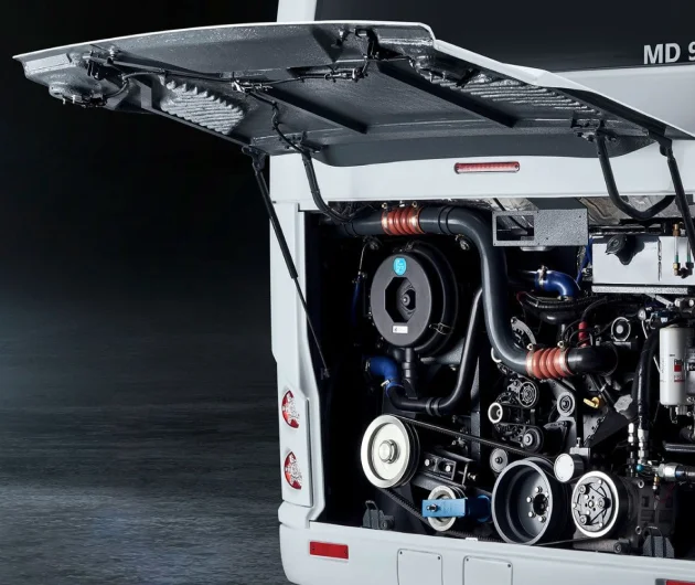 - Ефективний дизельний двигун Cummins ISB6.7. Потужність у 250 кінських сил забезпечує високу продуктивність і економію пального, що робить автобус екологічно безпечним та економічним у використанні.