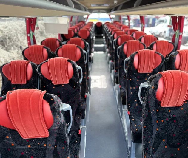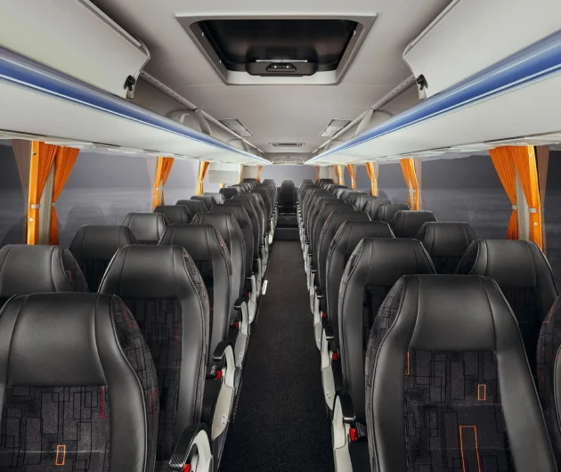 Подорожуючи на туристичному автобусі Temsa HD 13, пасажири відчують справжній комфорт. Просторий салон з зручними сидіннями, що регулюються, та достатнім простором для ніг створює атмосферу затишку та дозволяє розслабитися під час тривалих поїздок. Система клімат-контролю підтримує оптимальну температуру в салоні за будь-якої погоди, а сучасна мультимедійна система з індивідуальними роз’ємами USB для кожного пасажира забезпечить розваги в дорозі. Загальна пасажиромісткість автобуса сягає 63 місць, що робить його ідеальним для великих туристичних груп.