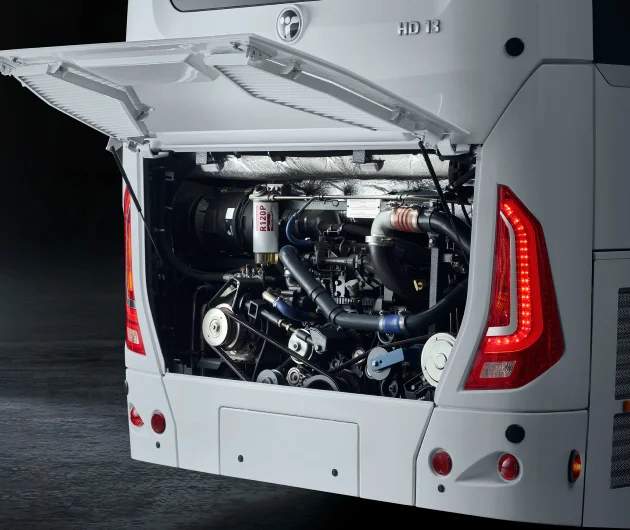 Під капотом туристичного автобуса HD 13 встановлено потужний та екологічний двигун DAF об’ємом 10,8 л, що відповідає стандарту Євро-6. Цей дизельний двигун забезпечує не лише високу потужність (408 к.с.), але й низьку витрату палива, що є важливим фактором для оптимізації витрат на перевезення. Максимальний крутний момент двигуна досягає 2100 Нм при 900-1125 об/хв, гарантуючи впевнену тягу на будь-яких дорогах. Габарити автобуса становлять 13076 мм в довжину, 2550 мм в ширину та 3644 мм у висоту, що забезпечує достатньо місця для пасажирів та багажу.