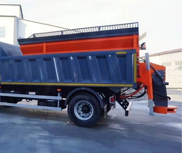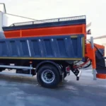 - Піскорозкидальне обладнання з бункером 6,8 м³, ширина розкидання — до 12 м