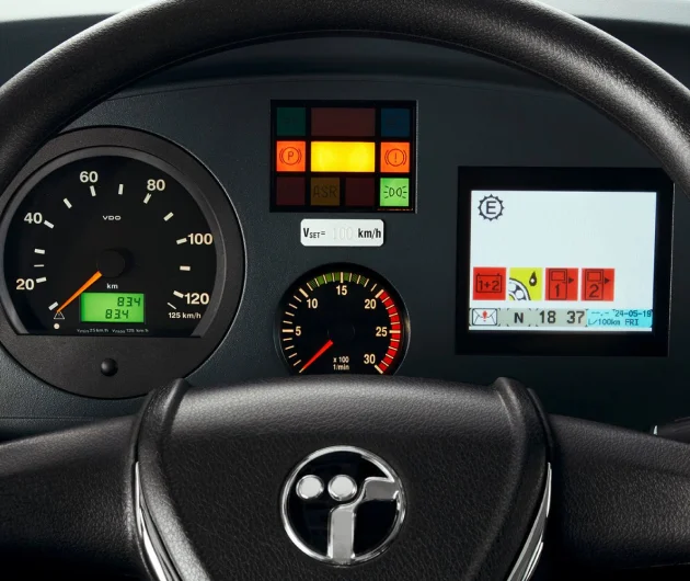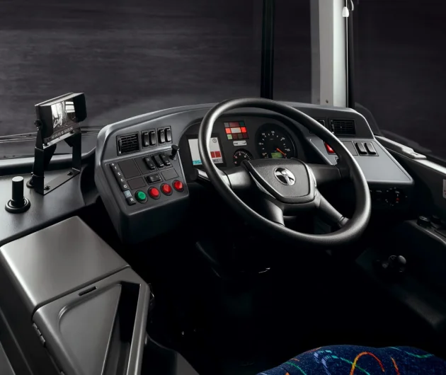 - Зручність для водія: Комфортне регульоване крісло водія, ергономічна панель приладів та відмінна оглядовість створюють оптимальні умови для роботи водія. (Камери огляду салону та внутрішні дзеркала, камера заднього виду.)