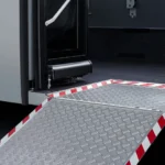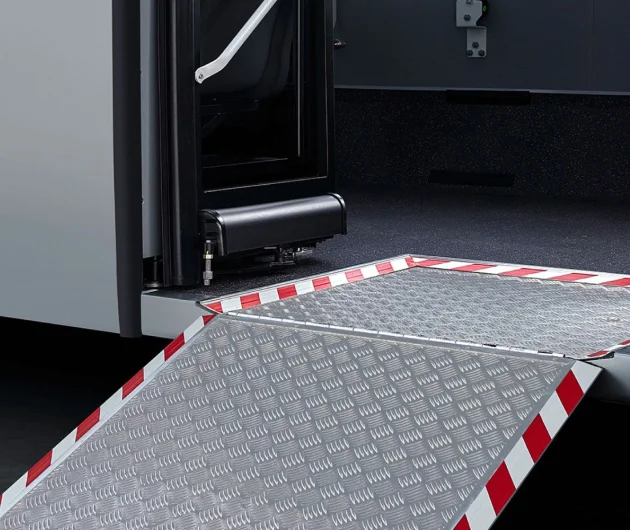 - Низька підлога та пандус: Забезпечують легкий доступ для пасажирів з обмеженими можливостями пересування, пасажирів з дитячими візками та людей похилого віку. Відсутність сходинок полегшує посадку та висадку, скорочуючи час зупинки на маршруті.