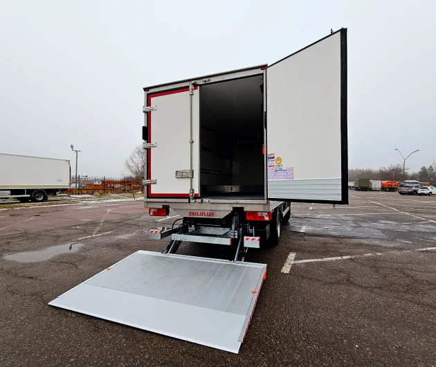 - Обладнання: висувна драбина, ПВХ-завіса, алюмінієві відбійники та фіксатори вантажу забезпечують зручність експлуатації.