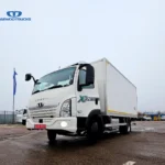 Фургон рефрижератор Daewoo Dexen 4×2 з гідробортом — ідеальне рішення для перевезення вантажів, що потребують температурного контролю. Оснащений турбодизельним двигуном FPT (185 к.с.), він відповідає стандарту Євро-6 та забезпечує економічну експлуатацію. Цільні сендвіч-панелі з термоізоляцією підтримують температуру до -18 °C. Гідроборт спрощує завантаження, а внутрішнє освітлення та протизковзке покриття підлоги підвищують комфорт роботи. Фургон рефрижератор Daewoo Dexen — надійний вибір для логістики, медицини та харчової галузі.
