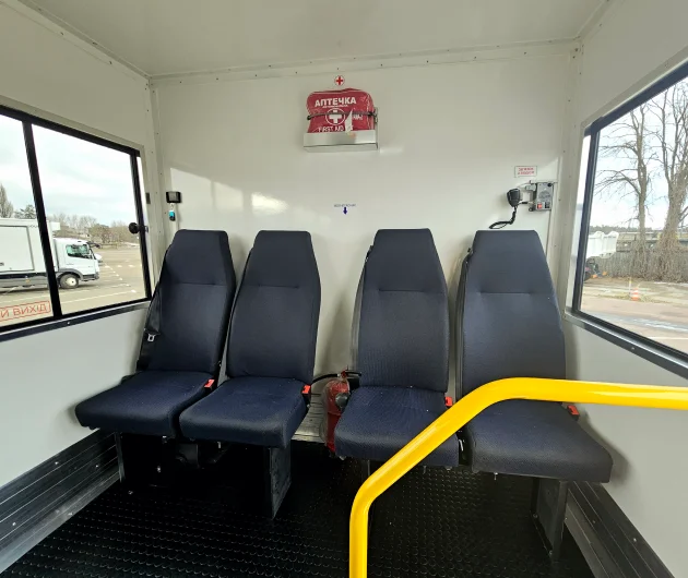 - Сидіння з високими спинками, покриті зносостійким матеріалом.