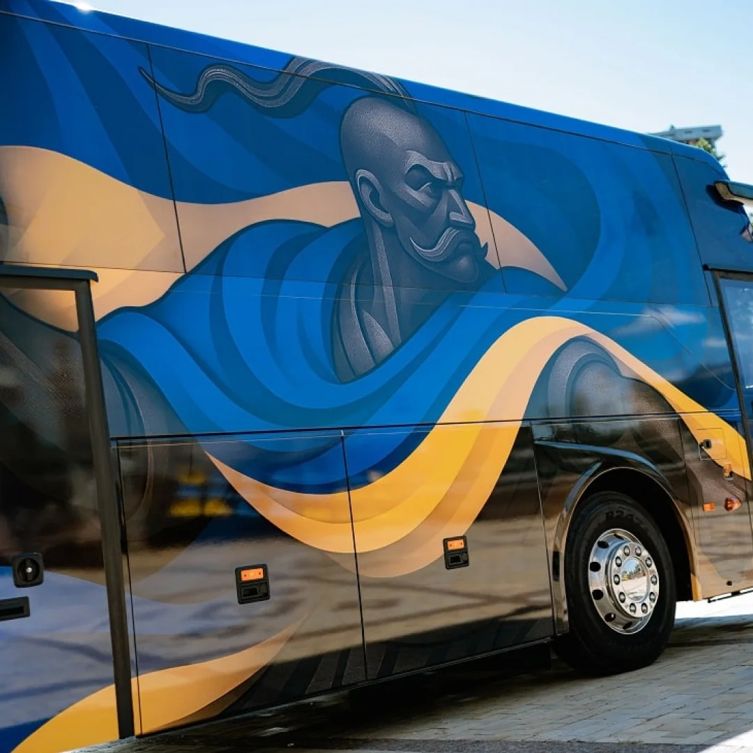 Як повідомляють у пресслужбі УАФ, автобус отримав унікальне дизайнерське оформлення, яке поєднує національні символи України та сучасний стиль.
